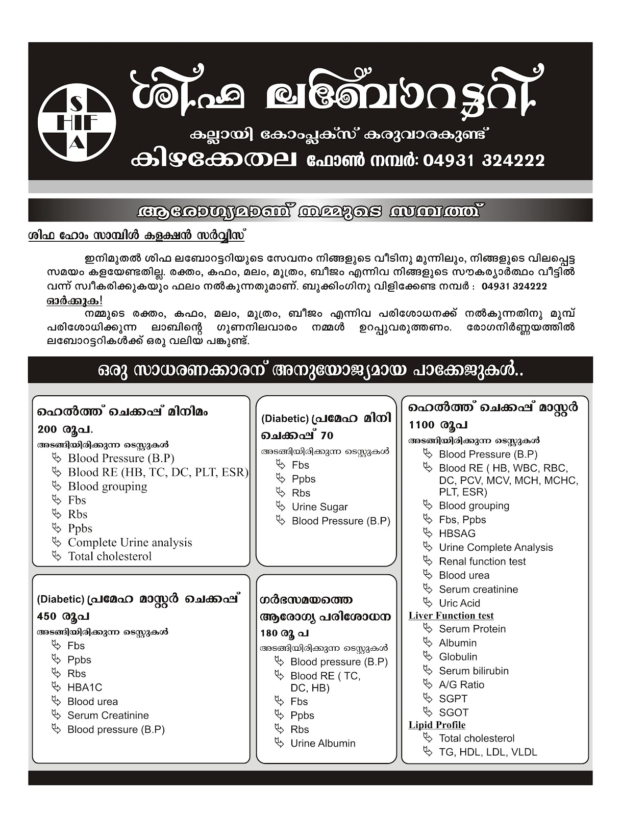 (Gateway to heal and comfort) Karuvarakundu, Maruthingal (Oppt. Safa Jewelry) Ph: 04931-324222 Mob. 09744938346 KAruvarakundu, Kembinkunnu (Oppt. Health Center)